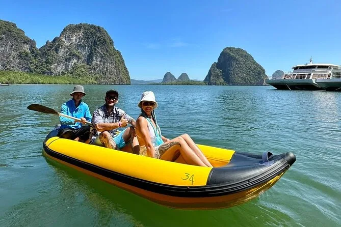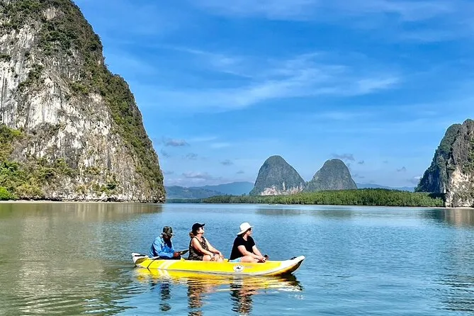 You’ll glide by private boat through Phang Nga Bay’s limestone islands, canoe hidden lagoons with your guide handling the paddling, explore Koh Panyee’s floating village for lunch, and walk on James Bond Island itself. Expect local snacks, cool drinks onboard, and plenty of quiet moments only broken by laughter or monkey chatter—leaving you with memories that stick long after you’re back in Phuket.