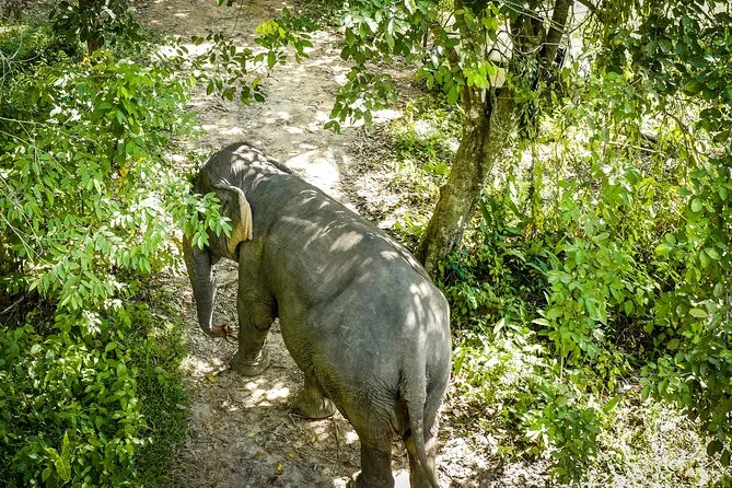 You observe rescued elephants roaming freely below from the 500-meter-long canopy walkway.