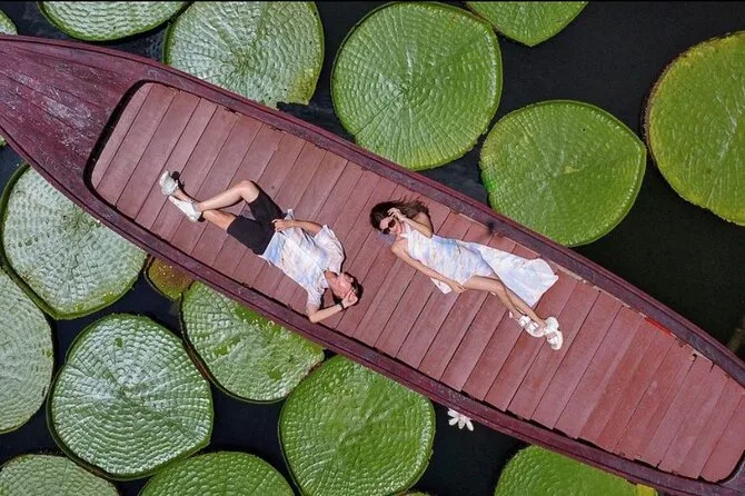 Yes, drone pictures are included so you can get unique shots standing on or near the giant water lilies or from a longtail boat.