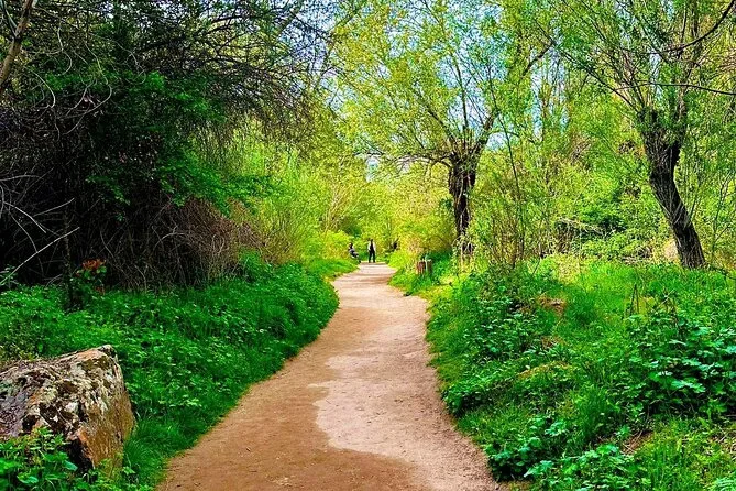 The walk is about 3 km along mostly flat paths suitable for most fitness levels.