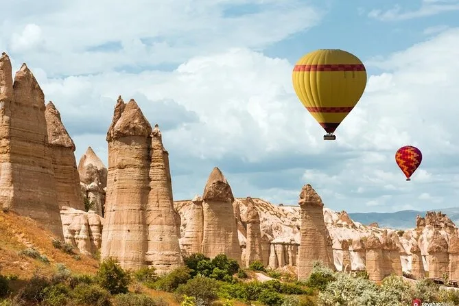 The day trip covers several sites around Cappadocia including Fairy Chimneys, Devrent Valley, Avanos pottery workshop, Love Valley, Göreme Panorama Point, Zelve Open-Air Museum, and Uchisar Castle; expect a full-day tour.