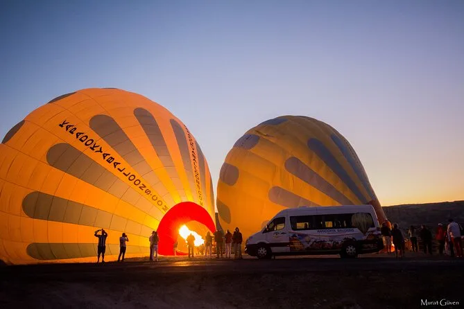 The tour begins early before sunrise with hotel pickup to catch dawn light over Cappadocia.