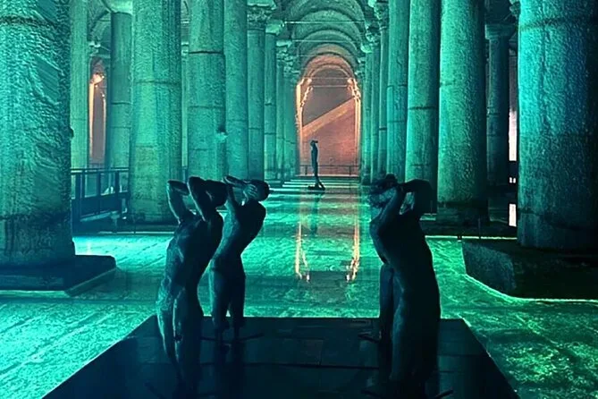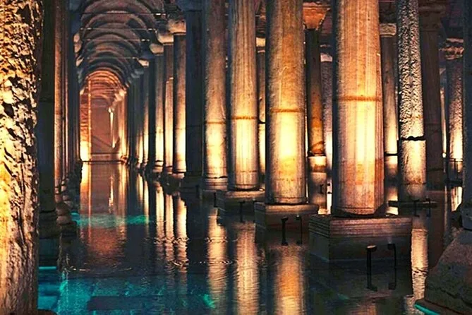 Walk ancient cistern shadows then palace courtyards above Istanbul’s old heart