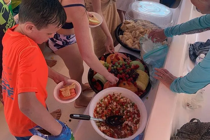 Your day includes bottled water to keep cool in the sun, alcoholic drinks for adults who want them, plenty of snacks (kids will be happy), use of all snorkeling equipment needed to search beneath the waves for shells or conch, plus free WiFi onboard so you can share photos or check messages while drifting between cays.