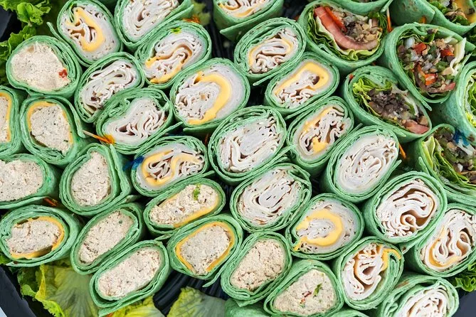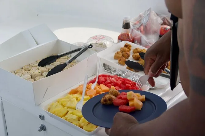 Yes, assorted wraps (turkey, tuna, veggie), fresh fruit, conch fritters, cookies and brownies are included.
