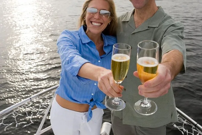 Your evening includes beachfront pickup and drop-off by boat from select Grace Bay hotels (sometimes after a short walk), all local taxes are covered in your price, plus you’ll enjoy local appetizers prepared by a nearby restaurant along with wine, beer, rum punch, soft drinks, bottled water—and of course a glass of champagne as you sail into sunset before heading back ashore.