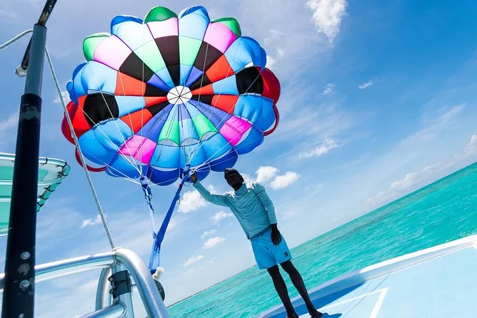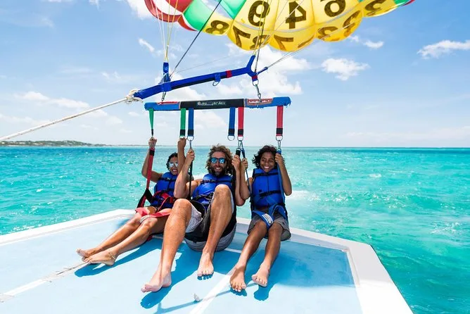 Your day includes pickup right from your chosen spot along Grace Bay Beach by the parasailing boat, all safety gear and instructions provided by friendly local guides (no experience needed), your full parasail flight over Providenciales’ turquoise waters, plus drop-off back at your original location after the ride. All taxes and fees are taken care of so you can just show up ready to fly.