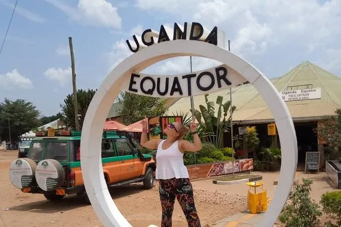 On our last morning we visited Kyambura Gorge for chimpanzee tracking — steeper than it looks from above! You get an hour with them if you’re lucky (we were), watching them swing between branches or just sit quietly chewing leaves while you try not to make too much noise stepping on twigs. After lunch it was back toward Kampala with another stop at the Equator for souvenirs; I bought a carved gorilla that now sits on my desk at home.