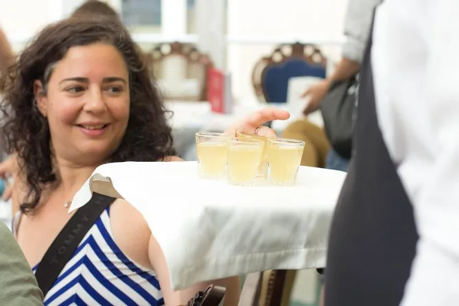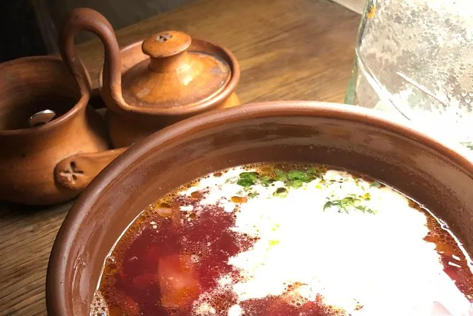 The first thing I noticed was the clatter of cups and that warm, bready smell drifting from somewhere nearby — honestly, it pulled us right off the main street. Our guide, Olena, waved us over with this easy smile and a quick “let’s start here,” like she’d been waiting for us all morning. We squeezed into a little spot where the walls were covered in old photos and the tables were already half-full of locals chatting over tea. She poured us a welcome drink (something her grandmother used to make, she said), and I could taste honey and maybe a bit of spice — not sure what exactly, but it felt like winter even though it was June.