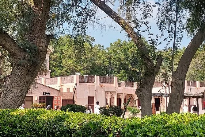 The Heritage Village felt a bit like stepping into someone else’s memory — old coins behind glass, a guy weaving cloth for sheikhs while his friend hammered away at something metal. Kids ran past us chasing each other with plastic swords (not exactly historical accuracy but made me smile). Quick photo stops after that: Yas Island’s racetrack glinting in the sun (couldn’t hear any engines though) and then outside the Louvre Abu Dhabi — its dome looked like it was floating above the water. We didn’t go inside but snapped photos anyway; Ahmed joked he’d seen more selfies here than art.