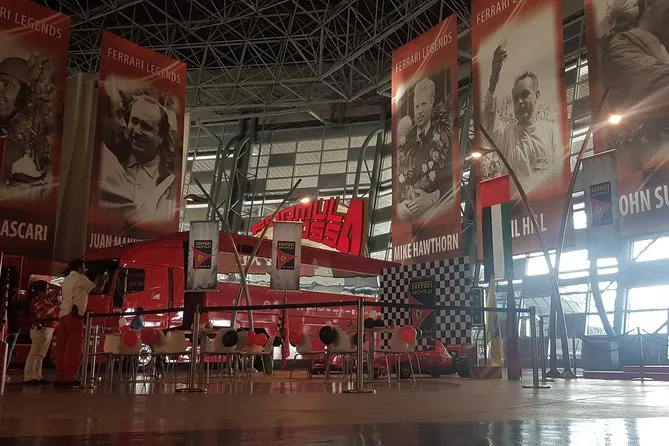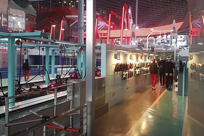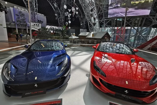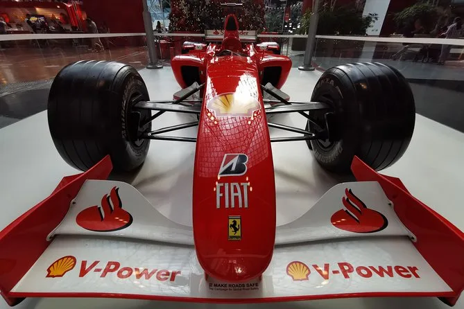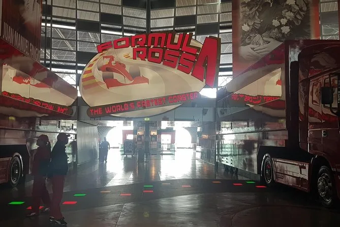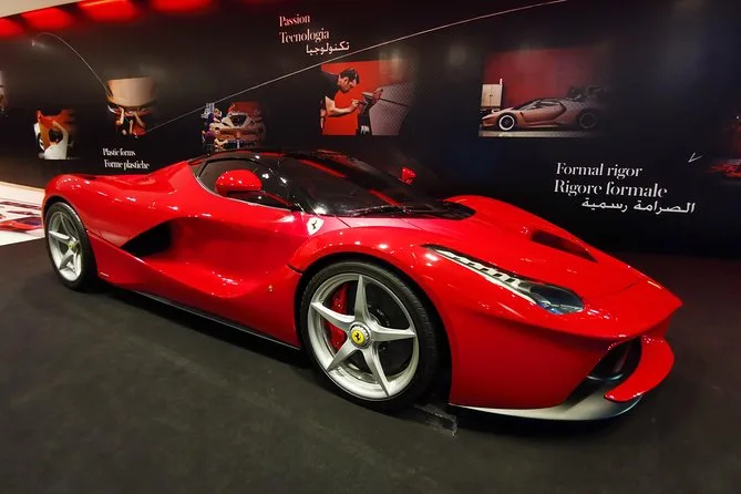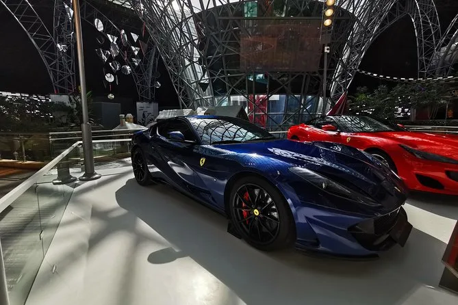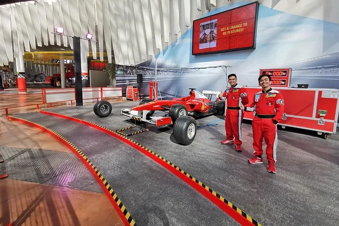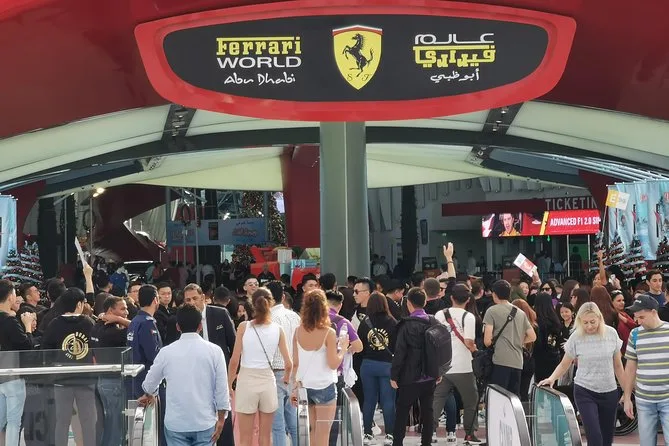 General admission tickets to Ferrari World are included; go-karting and simulators cost extra.