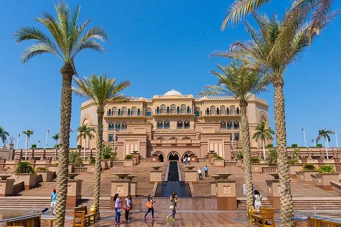 After the mosque, we drove down Sheikh Zayed Road—so many glass towers and villas flashing by, then suddenly you’re at this old-school dates market. The smell hit me before we even got out: sweet and earthy, like honey and dust mixed together. I tried a few different kinds (I liked the sticky ones best), and one of the vendors grinned when I asked for seconds. It’s these little stops that stick with me more than palaces sometimes. Speaking of which, we did swing by Emirates Palace for photos—gold everywhere, guards standing straight as rulers—and passed the Presidential Palace too. We didn’t go in but honestly just seeing them from outside felt surreal.