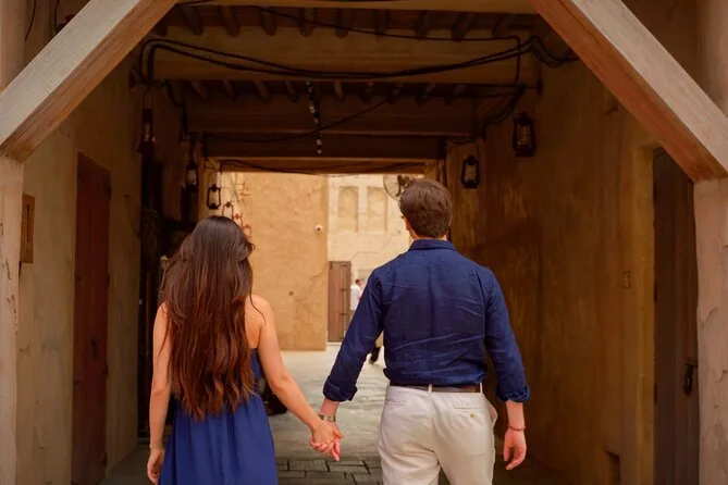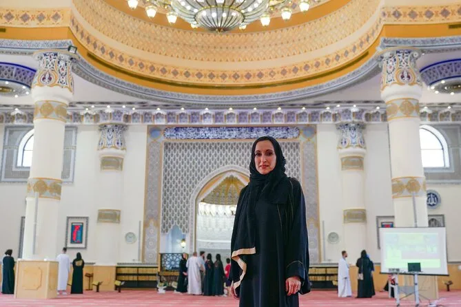 Your half-day includes hotel pickup and drop-off anywhere in Dubai, entry into the Blue Mosque with a guided walk through Al Fahidi District, an abra water taxi ride across Dubai Creek (fare covered), cold mineral water along the way, plus sweet tea at Al Khayma Heritage House—all led by a licensed local guide before returning you back comfortably.