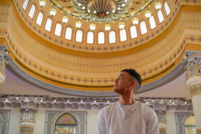 You’ll feel Dubai’s contrasts up close—from cool marble at the Blue Mosque to fragrant spice souks buzzing with life. Ride an abra across Dubai Creek with locals and sip sweet tea in Al Fahidi’s quiet lanes—all with hotel pickup and a guide who knows every shortcut.