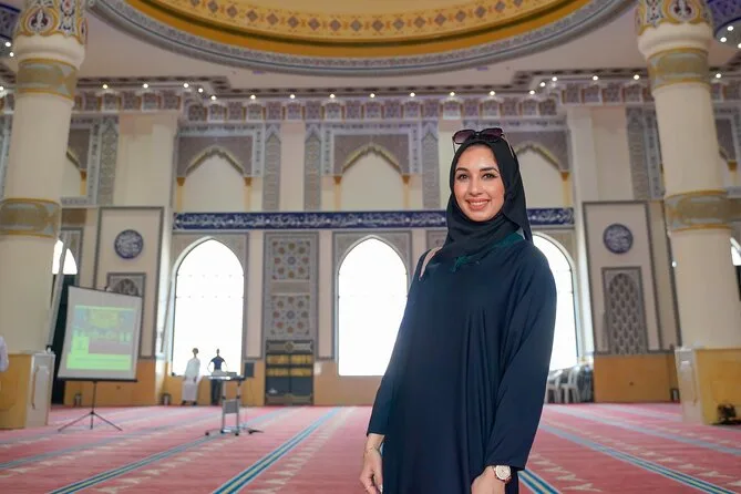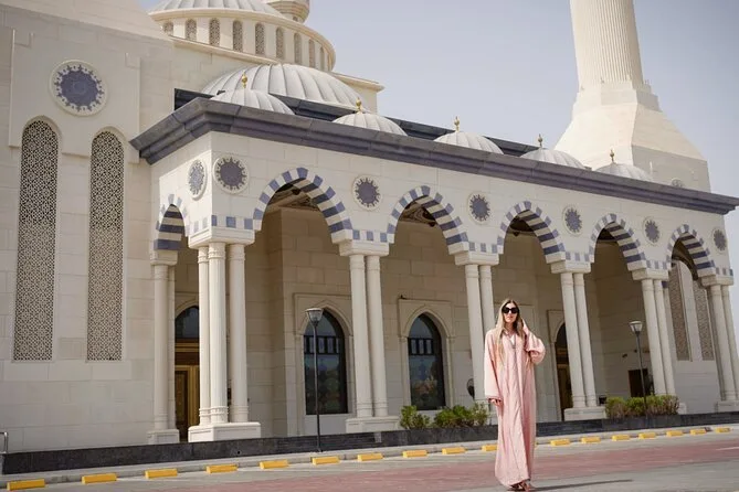 Yes, you’ll enter Al Farooq Omar Bin Al Khattab Mosque (the Blue Mosque) to explore its architecture.