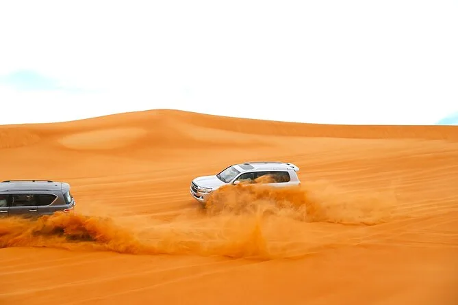 You’ll cross glowing red dunes outside Dubai for an evening of camel rides, henna painting, and smoky Arabic coffee before settling in for a barbecue buffet under open sky. Watch swirling Tanura dancers and belly dancing shows as night falls over the desert — you’ll leave full and maybe a little changed by the silence between songs.