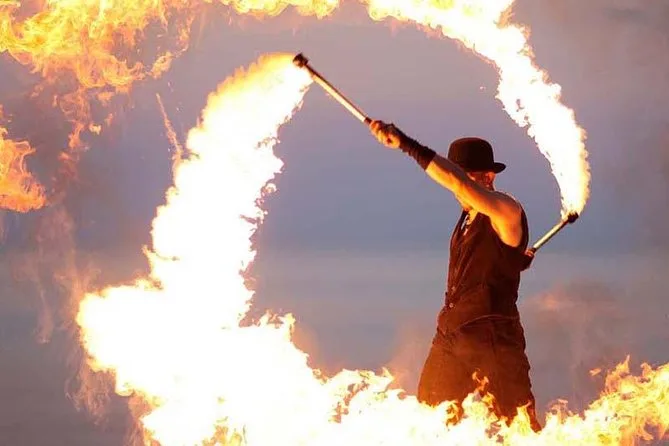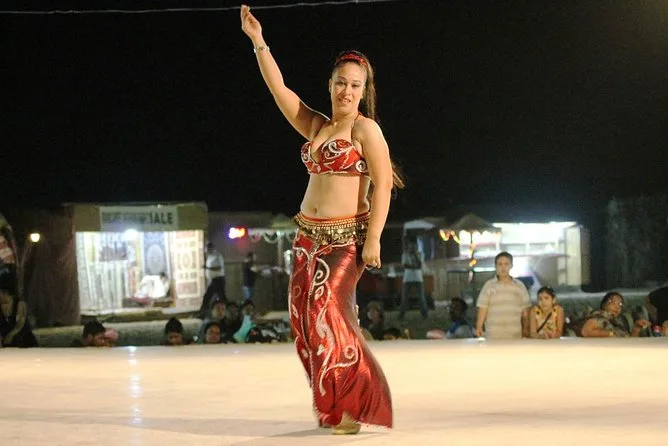 Your day includes hotel pickup and drop-off by an English-speaking guide on a shared basis; short camel rides (repeatable); dune bashing; sandboarding; sunset photo stops when possible; Tanura dance show, belly dance show (except during Ramadan/dry days), fire show; unlimited water and soft drinks; buffet BBQ dinner with vegetarian options; photos in local costume; shisha tasting; henna painting; plus welcome snacks with Arabic tea, coffee, and dates before heading back to your hotel in Dubai.