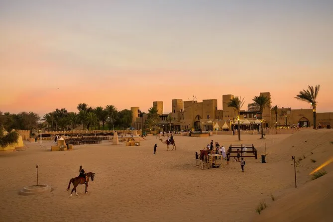 You’ll cross golden dunes from Dubai to a real desert fortress for camel rides, falcon encounters, and henna art before sharing a lavish buffet under lantern light. Watch belly dancers and fire shows as night falls — and leave with desert scents lingering long after pickup returns you to your hotel.
