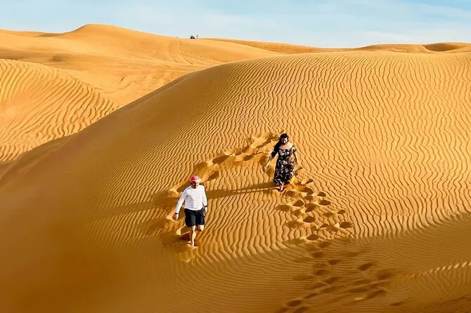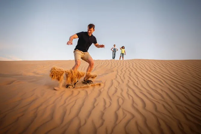 You’ll feel the thrill of dune bashing across Lahbab’s red sands, try your luck at sandboarding (expect to laugh), meet a falcon up close for photos, and ride camels led by locals who know every inch of the desert. Private pickup makes it easy — you just show up ready for adventure.