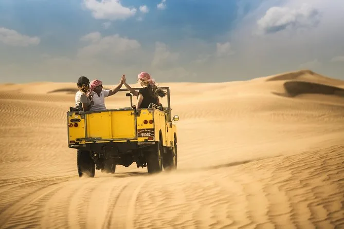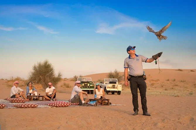 You’ll ride through Dubai’s wild desert in a vintage Land Rover with a local guide, spot wildlife as daylight fades, and watch falcons fly at sunset. At camp you’ll try Emirati bread-making, taste Arabic coffee and dates, then share dinner and music under torchlight. It’s not just a day trip — it’s one of those evenings that stays with you long after.