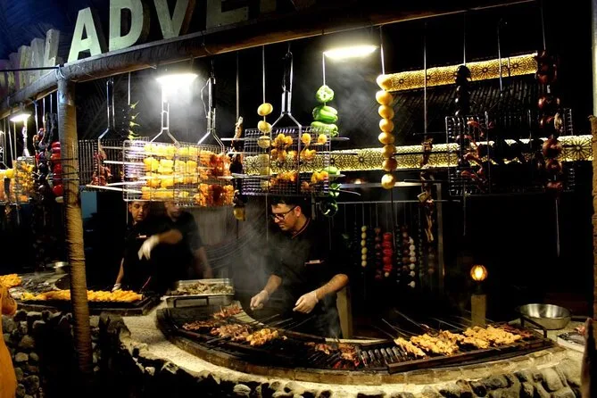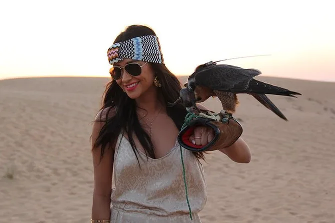 Your evening includes pickup from your hotel in Dubai by 4WD Land Cruiser for dune bashing adventures before arriving at Royal Adventure Camp. You’ll be welcomed with Arabic coffee and dates plus snacks and complimentary drinks throughout. Try henna painting or camel rides if you like; enjoy shawarma or falafel starters followed by an international BBQ buffet dinner with both vegetarian and non-vegetarian options. Watch live belly dancing, Tanoura dance shows and fire performances before heading back under desert stars.