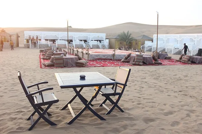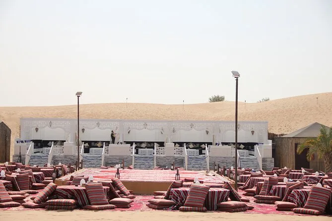 Your afternoon includes hotel pickup and drop-off from Dubai, an adventurous dune drive by 4WD with stops for sandboarding and sunset photos; then at camp you’ll find camel rides waiting (and yes—henna painting if you want), unlimited soft drinks plus tea or coffee, shawerma wraps hot off the grill alongside a full barbecue buffet dinner under lanterns. There’s also shisha pipes to try and dance performances before heading back to town.