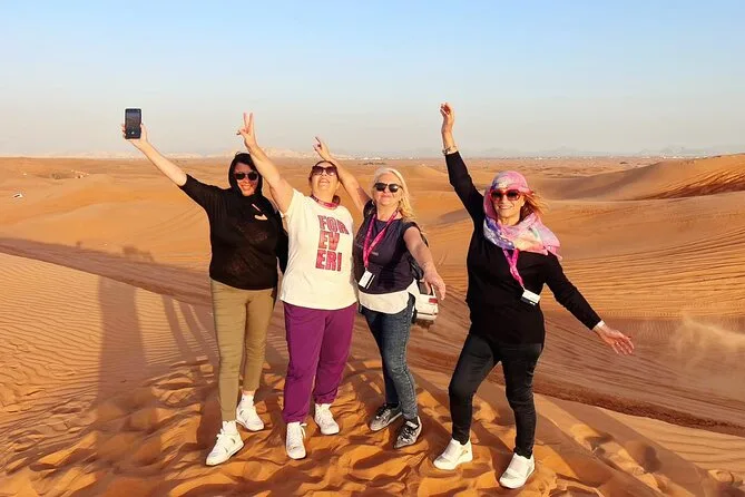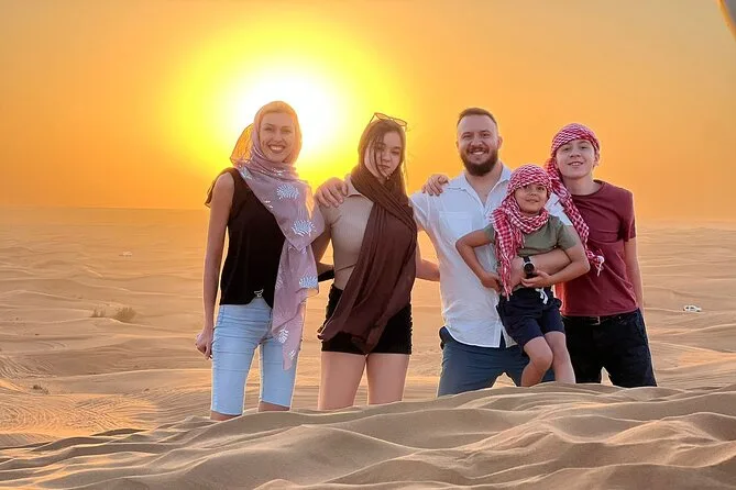 Dune bashing by 4x4, camel riding, sandboarding photo stop, henna painting, BBQ dinner with live entertainment shows.