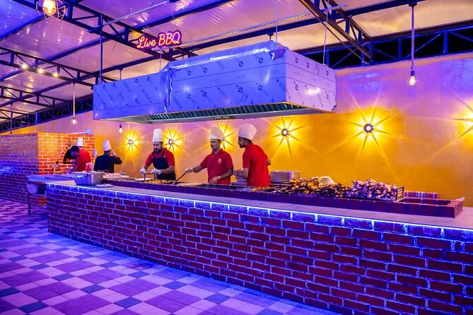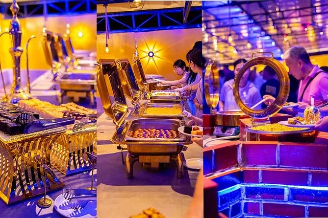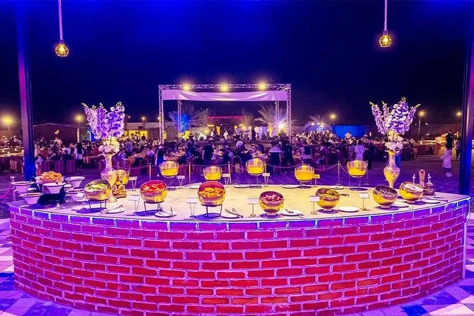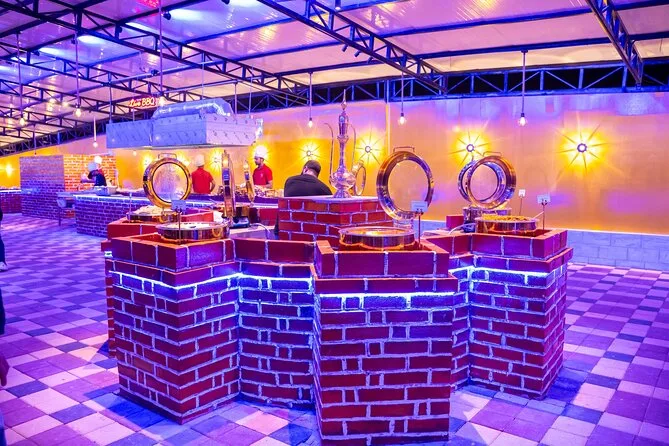The camp smelled like grilled meat and something sweet I couldn’t place. Henna artists waved us over; I got a little flower on my wrist, still faintly there now. The buffet was bigger than I expected — curries, kebabs, salads — and nobody seemed shy about seconds or thirds (I definitely wasn’t). We sat around low tables while dancers spun in bright skirts and someone did a fire show that made my heart thump louder than the drums. At some point I just leaned back and looked up at all those stars above the desert, feeling small but sort of peaceful too. It’s hard to explain unless you’ve been out there yourself.