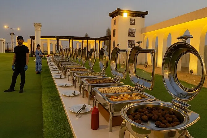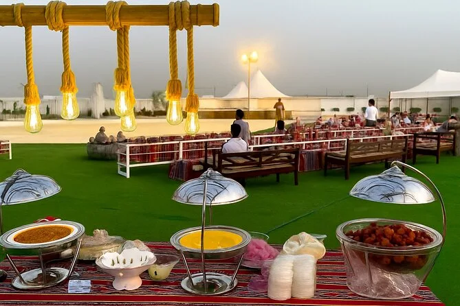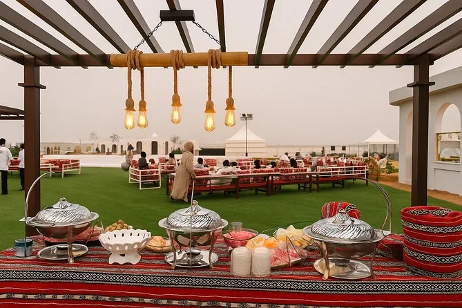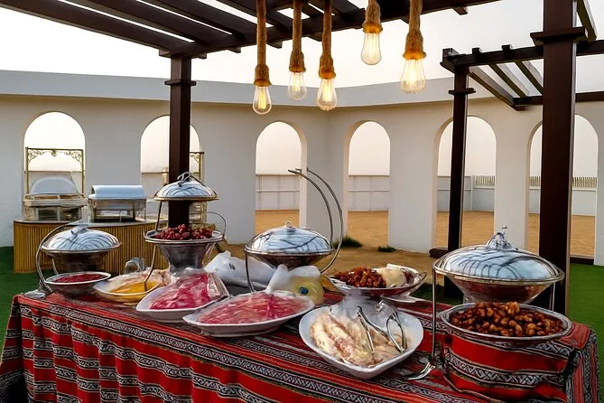 The camp felt like another world: lanterns swinging gently, smoke from the BBQ drifting over carpets laid out under the open sky. Our guide handed us plates piled high with grilled chicken and rice—so much flavor I actually stopped talking for a minute (rare for me). Henna artists waved us over; my design smudged because I couldn’t sit still long enough. Later, dancers spun and a fire show lit up everyone’s faces—there was this moment when everything went quiet except for the crackle of flames and someone clapping off-beat behind me. I didn’t expect to feel so at home out there.