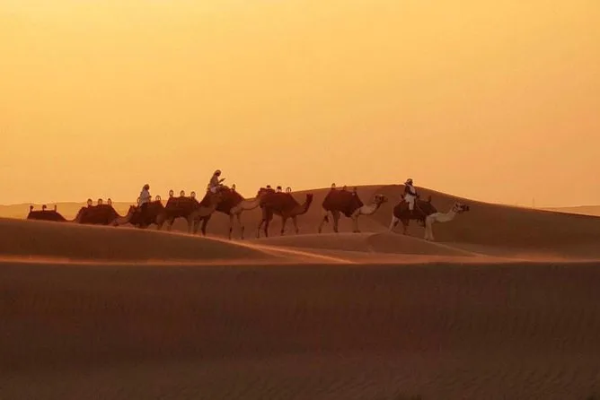 Your day includes hotel pickup and drop-off by 4x4 Land Cruiser with a licensed driver; unlimited soft drinks, bottled water, tea and coffee; snacks; access to all camp activities like camel rides and sandboarding; henna painting; shisha; an international buffet BBQ dinner with vegetarian options; plus live Tanoura dance shows and belly dancing before heading back to your hotel at night.
