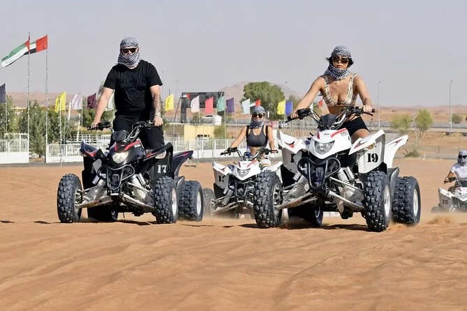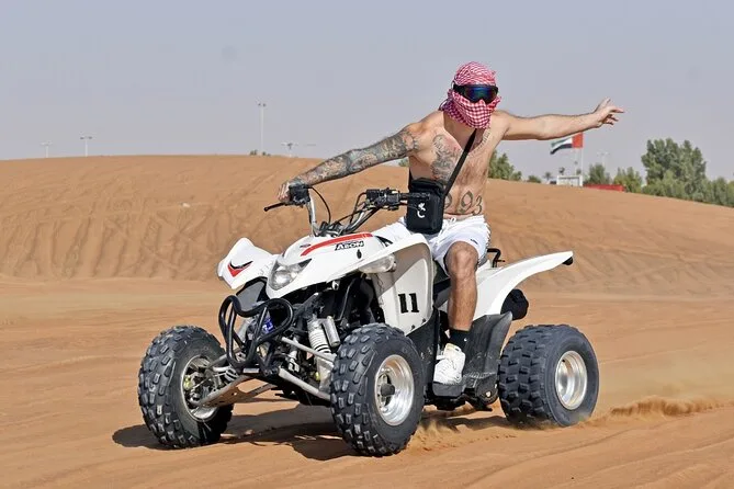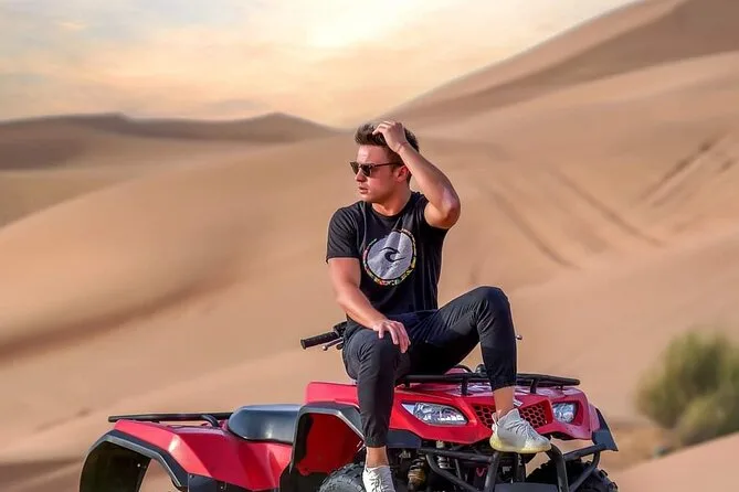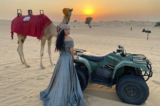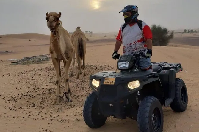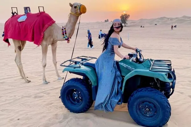 You’ll race across Dubai’s red dunes by ATV bike, ride a camel as sunset colors sweep over the sand, then relax at a Bedouin camp with live BBQ dinner and entertainment. With hotel pickup included and a local guide leading every step, you’ll taste adventure and tradition in one wild afternoon.