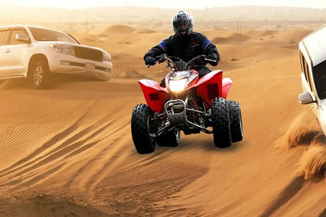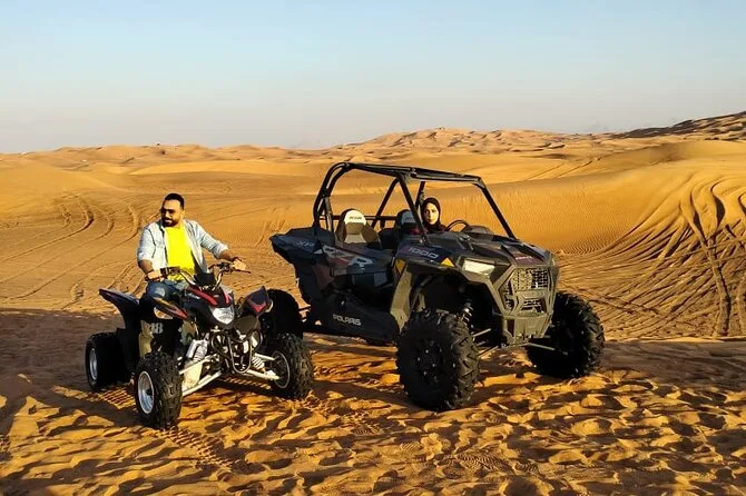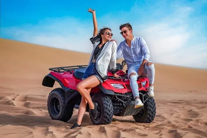 “You ever tried driving an ATV on sand?” our guide Khalid grinned as he handed me the helmet. I just laughed — honestly, I was already nervous from the moment we left Dubai’s city edge and saw those red dunes stretching out forever. The air smelled kind of dry and sweet, like warm bread left in the sun. My palms got sandy fast but I didn’t care; the engine buzzed under me and suddenly we were flying over bumps that looked small until you hit them. I probably shouted too loud but nobody heard over the wind anyway.