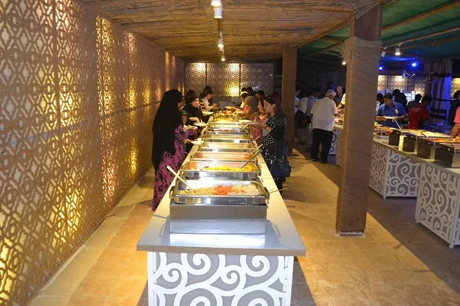 We stopped at what looked like the middle of nowhere. Camels were waiting — taller than I expected and with these long-lashed eyes that made me feel both awkward and weirdly calm. The camel ride was short (my thighs thanked me), but there was this moment when everything went quiet except for the wind and some distant laughter from another group. I caught the smell of grilled meat drifting from the camp ahead. Honestly, I didn’t expect to get hungry in the desert.