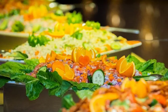 Belly dance show, fire show, and tanoura show are all included in the evening program.