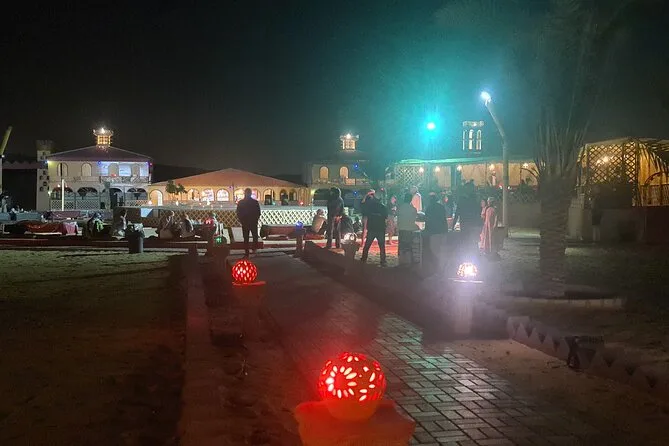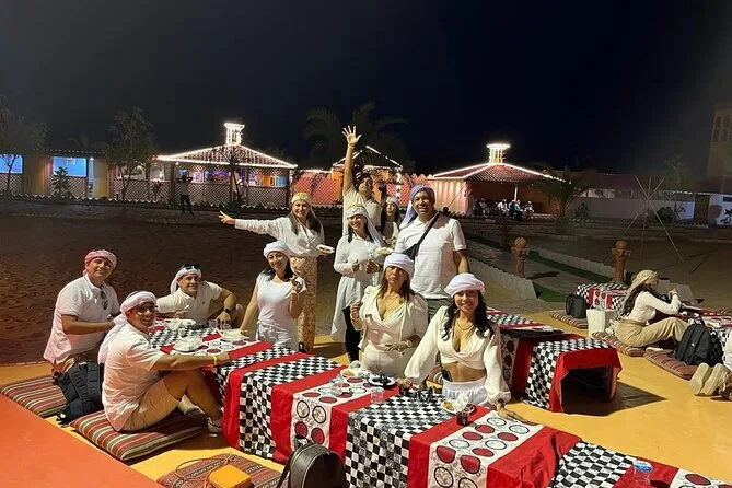 Camel rides (repeatable), sandboarding, henna painting, shisha smoking, local attire try-on, live shows (except belly dance during Ramadan).