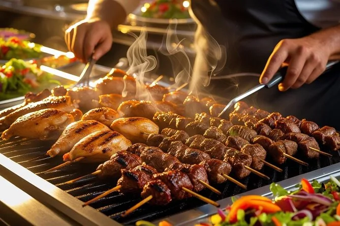 Your day includes hotel pickup and drop-off within Dubai city limits, all open desert quad biking gear (with your own ATV for up to 60 minutes if you want), thrilling dune bashing in a 4x4 SUV with photo stops on high dunes, entry to Majlis elite camp for camel rides you can repeat if you’re brave enough plus sandboarding and shisha sessions if you fancy them; there’s also henna art by local artists and local attire makeovers before sitting down to a five-course BBQ dinner with drinks—vegetarian or Jain meals on request—and four different live shows unless it’s Ramadan or certain holidays when belly dancing is skipped.