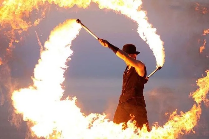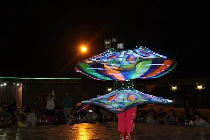 The live shows started after dark — first this whirling Tanura dancer with skirts that flashed neon colors, then a fire performer who spun flames so close I could feel the heat on my face. The belly dancer winked at a kid in our group who tried (badly) to copy her moves. Food was everywhere: smoky kebabs, spicy rice, crunchy salads. We sat on low cushions and drank tea while people drifted between tables or lined up for photos with a falcon. It was noisy but in that good way where everyone’s just relaxed.