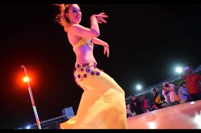 Yes—there are several live shows including belly dancing, Tanura dance show, and fire performance.