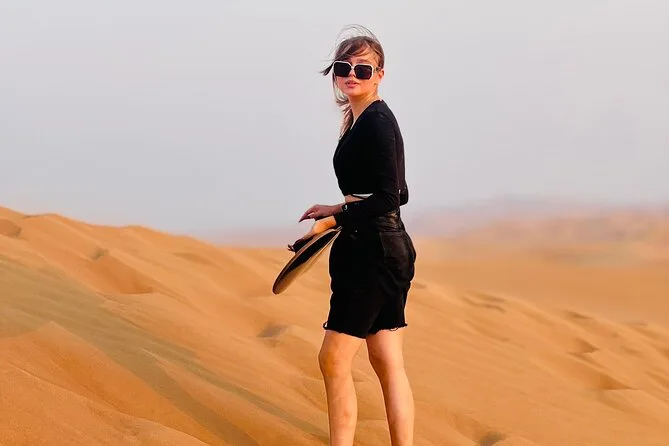 The light changed fast — one minute it was harsh and white, then suddenly everything turned gold. We stopped for photos right as the sun dipped behind the dunes. It got quiet except for some distant laughter and someone trying (badly) to balance on a sandboard. I gave it a go and fell almost instantly; Khalid just shook his head and handed me a bottle of water. There’s something about that dry air that makes every sip taste cold and sweet.
