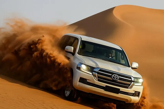 You’ll ride over Dubai’s red sand dunes in a 4x4 for some wild dune bashing before trying sandboarding and a gentle camel ride at sunset. At camp you’ll taste smoky BBQ dishes and sip spiced tea while watching live belly dance and fire shows under desert stars. It’s lively but there are these small moments of calm too — somehow both thrilling and peaceful.