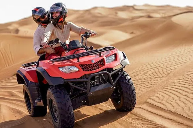 Your day includes hotel pickup and drop-off in an air-conditioned 4WD vehicle for dune bashing before heading to Caravanserai Bedouin Camp. There you’ll be welcomed with Arabic coffee and dates, try camel riding or quad biking if you want (it’s optional), meet a falconer for photos, get henna art done by local artists, shop at an Arabian souk stall or two if you feel like it, then settle in for a luxury banquet buffet with international and Middle Eastern dishes while watching live entertainment under the desert sky before heading back to your hotel late evening.