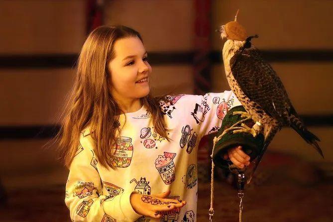 At Caravanserai camp, things slowed down. There was this whole welcome ritual: rose water on your hands, tiny cups of Arabic coffee that tasted smoky and strong (I probably drank too many), and dates so sticky they glued my fingers together. A local falconer let us hold his bird — I was nervous but he just nodded and said “gentle,” so I tried to look brave for the photo. The falcon’s feathers felt softer than I expected. Someone nearby was laughing in Arabic; I caught maybe three words but still felt included somehow.
