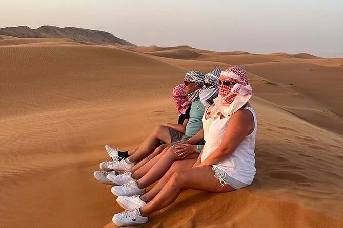 I didn’t expect the sand to feel cool under my fingers when we stopped for photos — I always pictured deserts as just heat. Our driver, Kareem, picked us up right from the hotel in this big white SUV (my friend joked it looked like we were in a movie). The city faded out fast and suddenly there was just this endless red sand, like someone had turned down the volume on life. Dune bashing was wilder than I thought — Kareem grinned at us in the rearview mirror every time we shrieked. I think I laughed more out of nerves than anything else. Sand got everywhere, but honestly? Worth it.