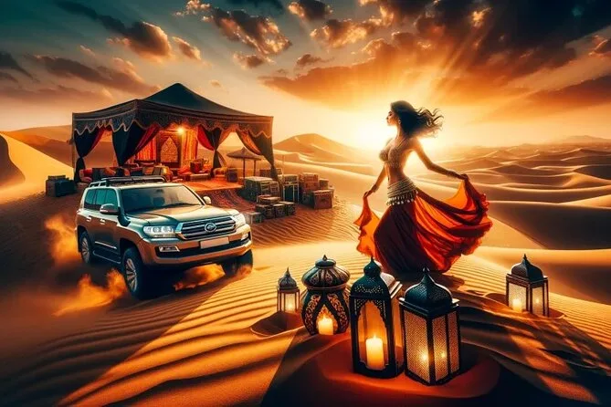 You’ll barrel across Dubai’s Lahbab red dunes in a 4x4, try quad biking and camel rides, taste strong Arabic coffee at camp, watch live dance shows under lantern light, then end your night stargazing from old rugs in the sand. This desert safari includes pickup from your hotel and all activities—it’s less about ticking boxes than feeling every moment out there.