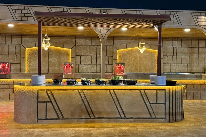 Your evening includes hotel pickup by 4x4 vehicle with a licensed guide, thirty minutes of quad biking (with ID), dune bashing across Lahbab’s big red dunes, sandboarding sessions, short camel rides and time to try traditional dress or henna tattoos at camp. You’ll be welcomed with Arabic coffee and dates before enjoying a BBQ buffet dinner with drinks while watching live Tanoura dance, belly dancing and fire shows under lanterns—all before returning to your hotel late at night.