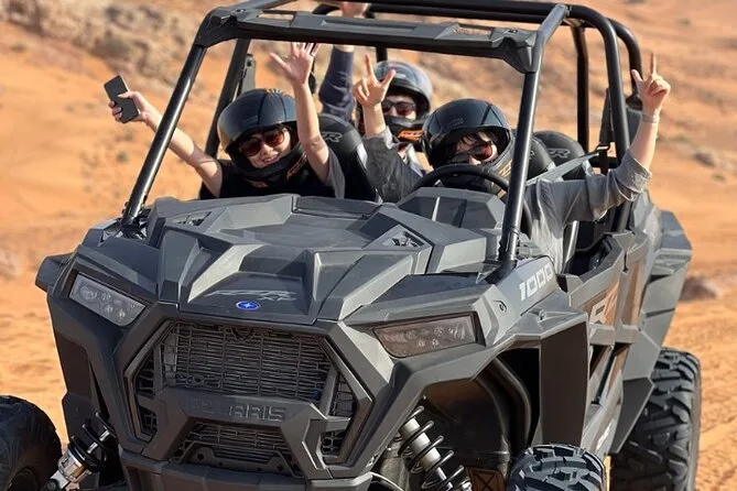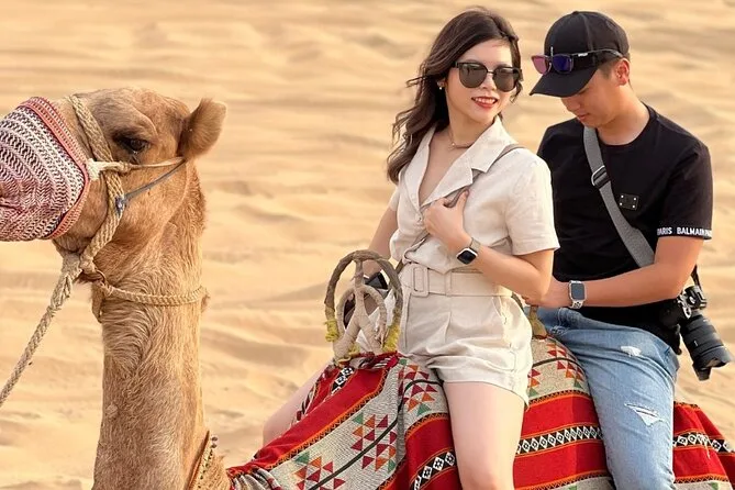 The tour also features dune bashing, sandboarding, camel riding, and photo stops.