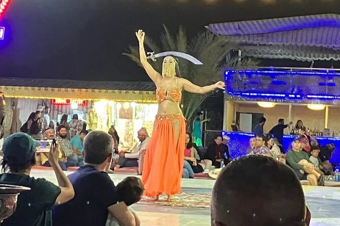 Yes—Tanura dance, fire show, and belly dancing are performed at the camp.
