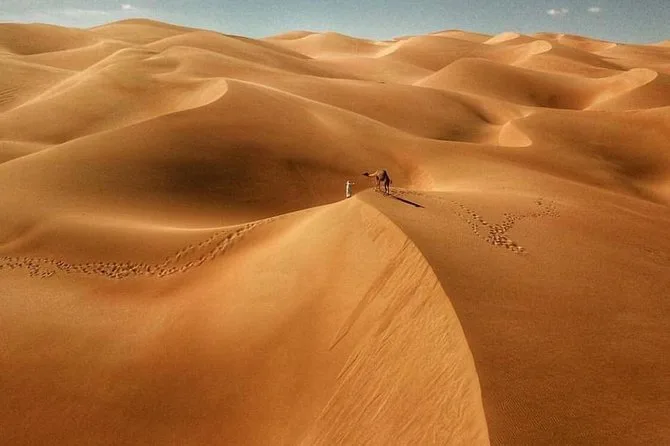 Your evening includes hotel or residence pickup by 4x4 Land Cruiser from anywhere in Dubai or Sharjah; 30 minutes of self-drive quad biking; guided dune bashing on Lahbab’s red sands; free sandboarding; camel ride experience; henna painting; falcon photo opportunity; access to premium desert camp with private cabanas; unlimited tea, coffee and water; BBQ buffet dinner with international and Middle Eastern options; shisha lounge access; live Tanoura dance show, belly dancing show and fire performance before return drop-off to your location.