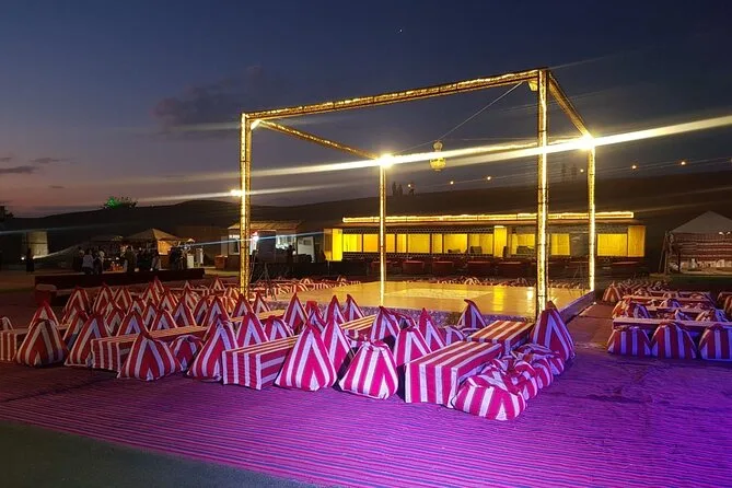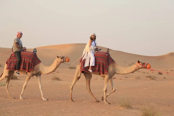 The tour also includes dune bashing in a 4x4, sandboarding, camel riding, henna painting (for ladies and kids), live dance shows, fire show, and shisha smoking for adults.