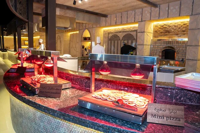 Your evening includes flexible hotel pickup in a 4x4 vehicle from Dubai or Sharjah; optional quad bike or buggy rides at your first stop; dune bashing adventure on red sands; sandboarding; entry to an Arabian Heritage Camp where you’ll enjoy a short camel ride; traditional henna painting; unlimited soft drinks plus tea and coffee; nine different live entertainment shows; clean seating areas; a gourmet international buffet dinner with vegetarian options; sizzling meats from a live BBQ grill; and drop-off back at your hotel afterwards.